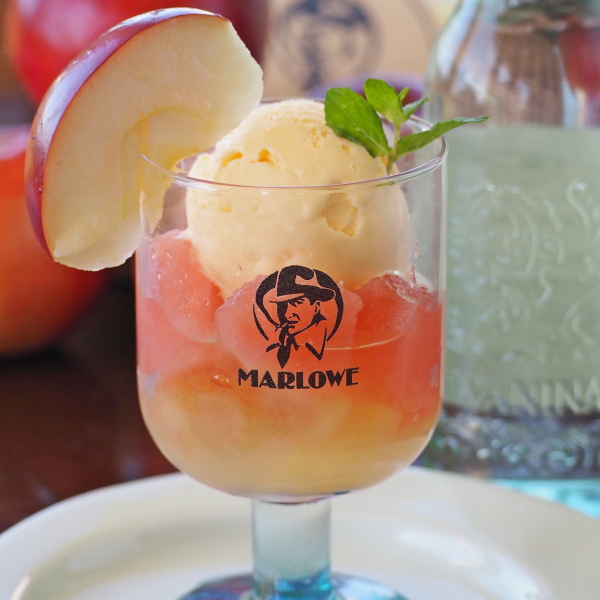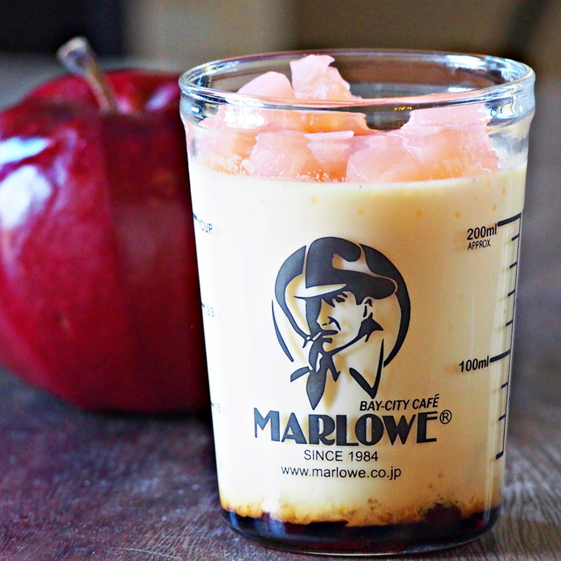 酸味と甘さのバランスが良い紅の夢りんごのコンポートは、マーロウのほろ苦いプリンカラメルと相性抜群。濃厚でクリーミーなクリームブリュレの底にカラメルとほんのりシナモンをまとった紅りんごのコンポートがごろごろ入っています。