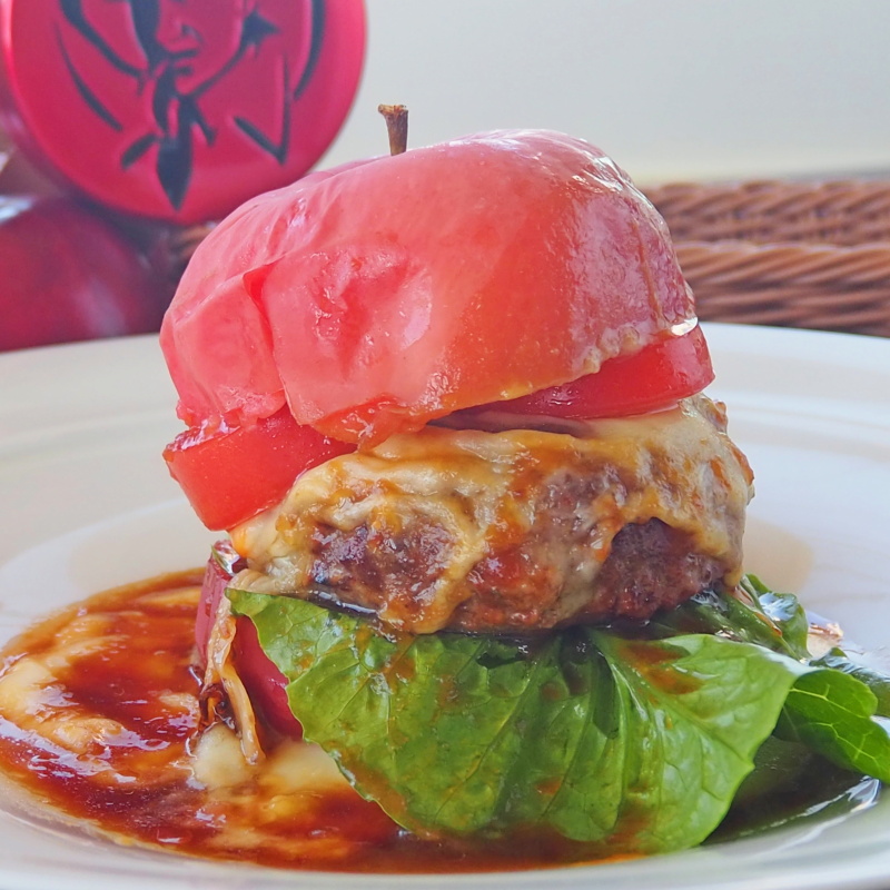 真っ赤な紅の夢を丸ごと1個使ってアップルバーガーを作りました。聞いたことも見たこともないアップルバーガー。