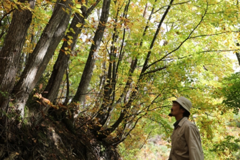 高橋さんの農園ではより自然に近い環境で栽培をしているそうで、山の斜面に畑があります。実際に畑にクマがおりてくることもあるそうで、小原果樹園さんのように大きな警戒音を流してしまうと近くにクマがいることに気がつけない為流せないとお話をしてくださいました。より野生に近い環境で育つりんごの樹は力強く、生命力にみちています。樹に語りかけながら観察をすることで変化を見逃さず対話をすることで自然と自分を見つめ直しているとお話をしてくださいました。