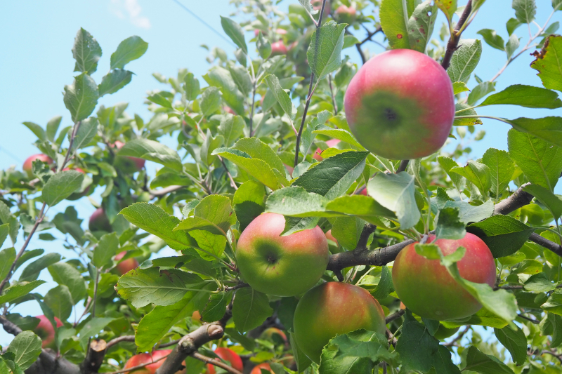 収穫時期を変えることにより、早取りでは加工品向きの酸味の強いりんごになり、 収穫時期を遅らせると蜜入りの生食に適したおいしいりんごになります。