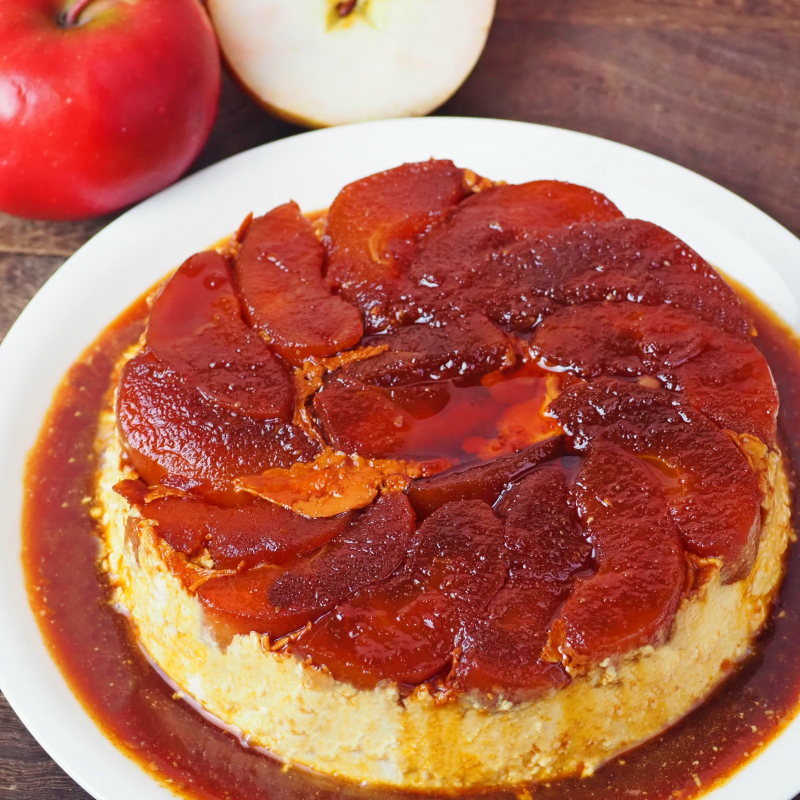プリンの上にもたっぷりとのったリンゴのプレザーブは底にも入っていますので、カラメルと合わさったお味もお楽しみいただけます。