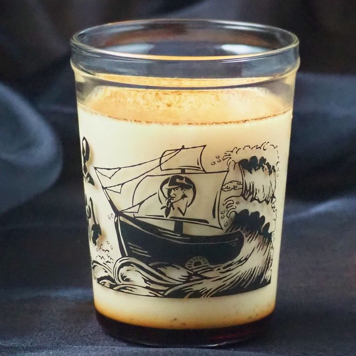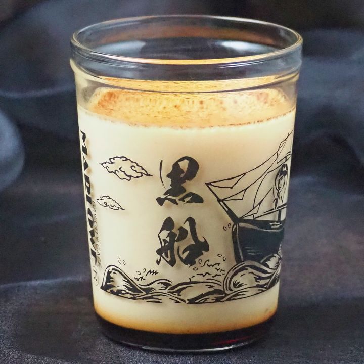 横須賀の歴史”黒船来航”を描いたビーカーです。荒波を超えていく様子が躍動感に溢れています。旗印にはマーロウおじさん。3周年を迎えて、気持ち新たにこれからのポートマーケット店の航海への強い意志の感じられる個性的なビーカーが完成いたしました。
