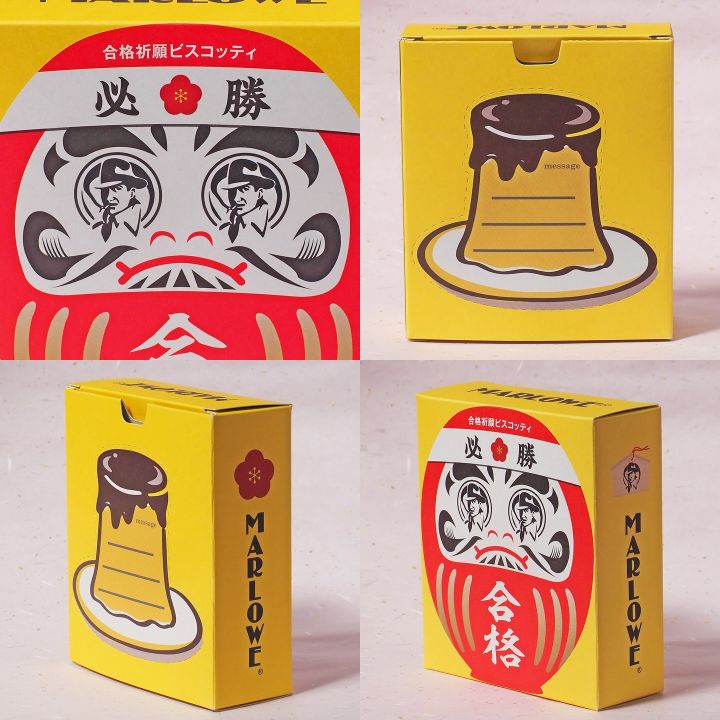 だるまの目は本来は最初から両目ともに入っているものが願掛け、縁起物として使われていたそうです。古来の風習に習い、マーロウの合格ビスコッティも今年は両目が最初から入っています。=すでに願いは叶っています!