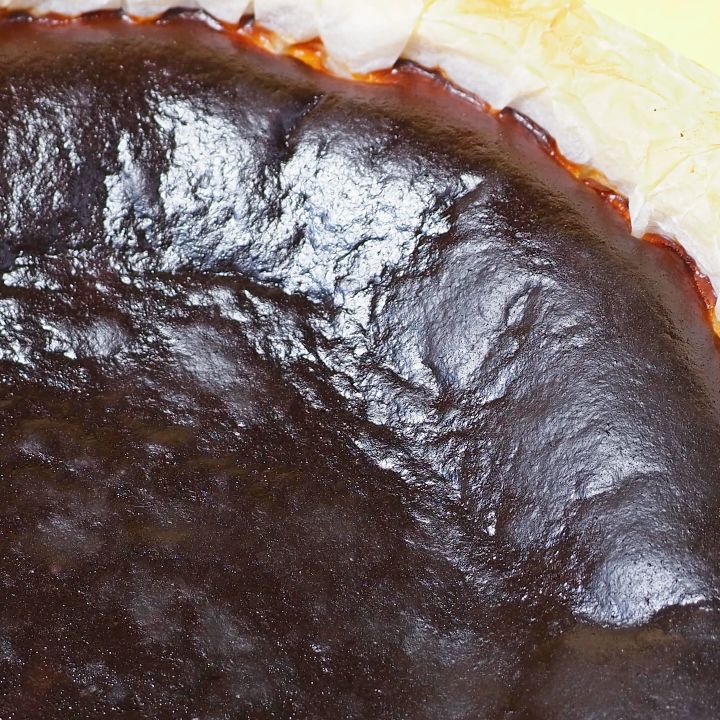 バスクチーズケーキの特徴である真っ黒な焼き目は高温で焼き上げることでカラメルのような香ばしさが生まれます。