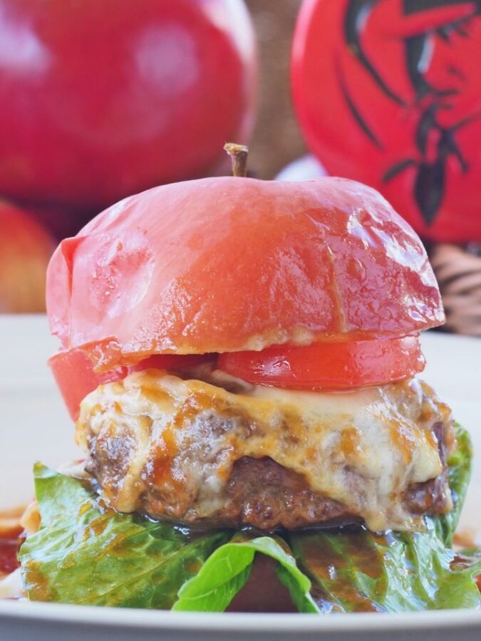 真っ赤な紅の夢を丸ごと1個使ってアップルバーガーを作りました。聞いたことも見たこともないアップルバーガー🍔🍎