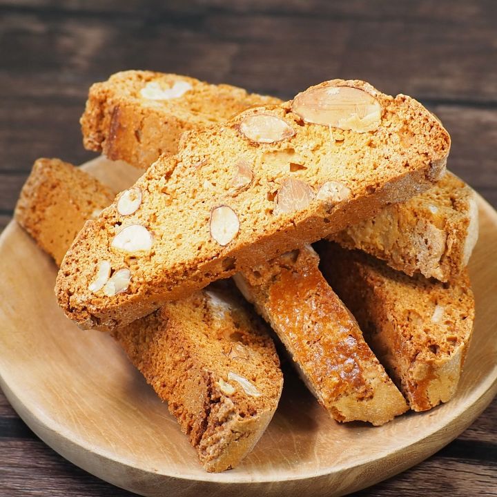 ビスコッティは「2度焼く」という意味のイタリアの焼き菓子です。大きく成形して一度焼き、スライスしてからもう一度焼きます。