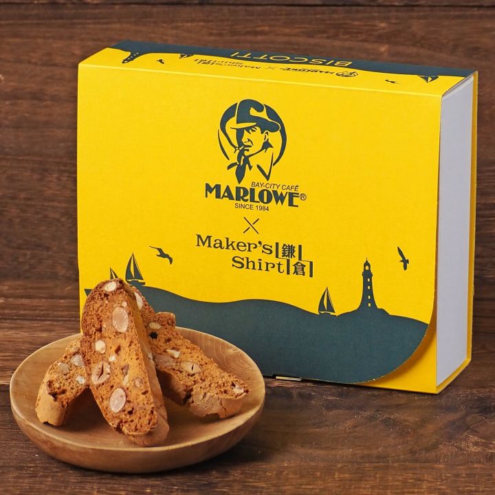 この度はお歳暮用にマーロウのビスコッティをお選びいただきました。デザインはメーカーズシャツ鎌倉様が作製されたデータをいただき、マーロウで箱を作りました。鎌倉の海をイメージしたオリジナリティ溢れる素敵なデザインに私達もわくわくしました♪