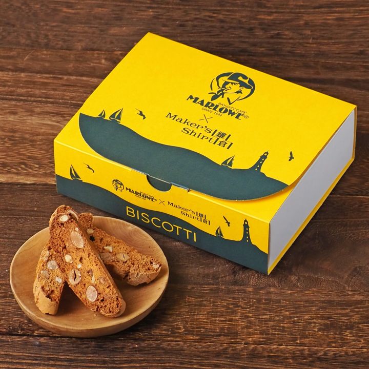 この度はお歳暮用にマーロウのビスコッティをお選びいただきました。デザインはメーカーズシャツ鎌倉様が作製されたデータをいただき、マーロウで箱を作りました。鎌倉の海をイメージしたオリジナリティ溢れる素敵なデザインに私達もわくわくしました♪