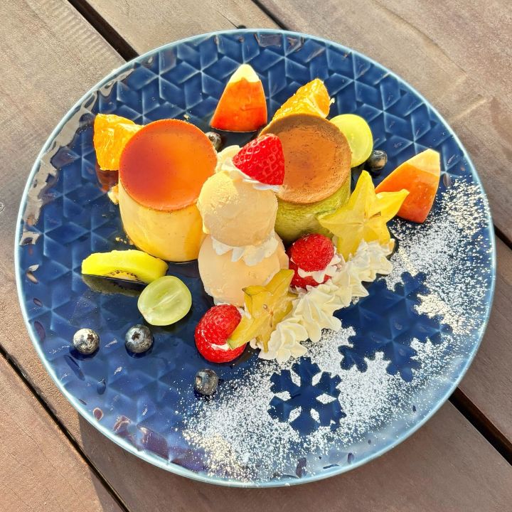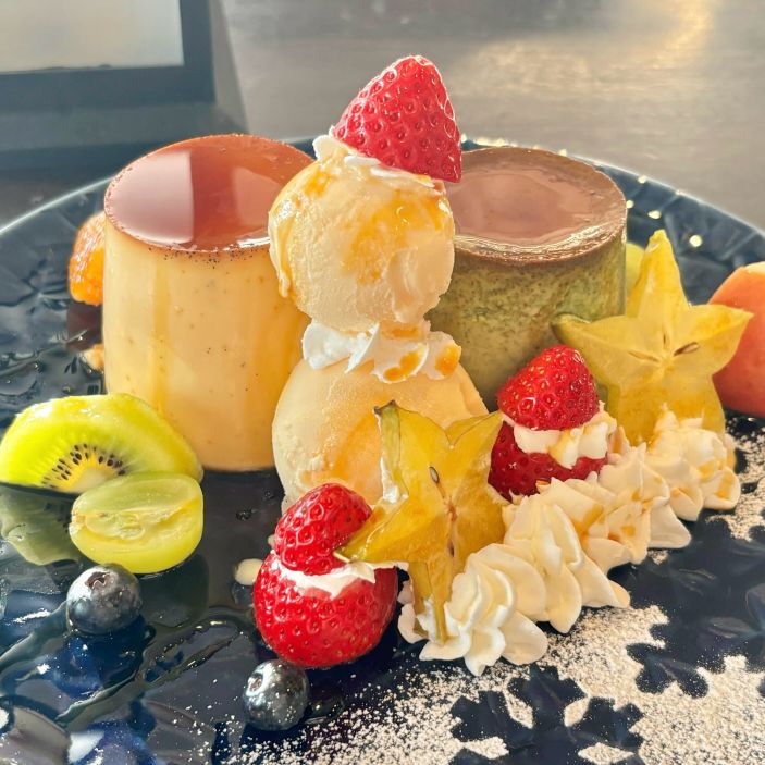 プリンはお好きな種類を2つお選びいただけるのがマリーナ店のツインタワー🍮🍮
