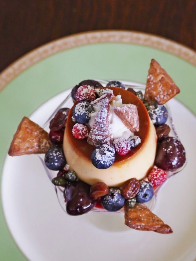 濃厚クリーミーな北海道フレッシュクリームプリンと甘酸っぱいチェリーソースとベリーがとても美味しいです!