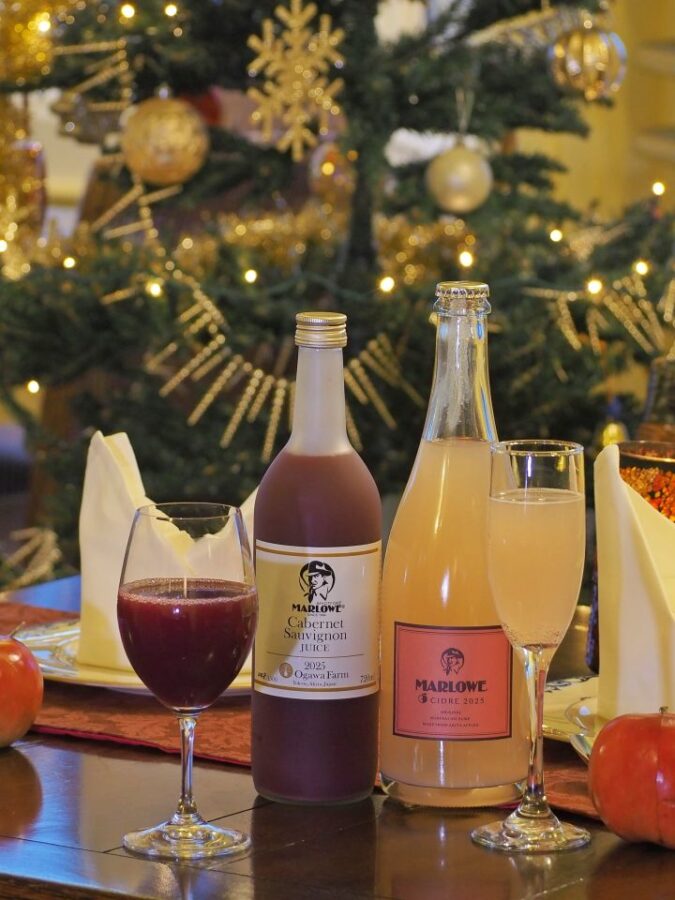 秋田県横手市で今秋収穫されたカベルネソービニヨンで作るぶどうジュースです。