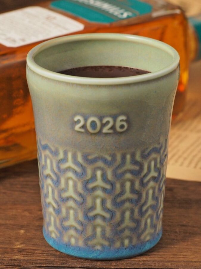 ウイスキー生チョコが入った渋みのあるモスグリーン陶器は、ロゴや模様の浮き出し、彫りの濃淡まで美しく、ひとつひとつ表情が違う、陶器職人の手仕事。食べ終わったあとも、そっと残しておきたくなる器です。