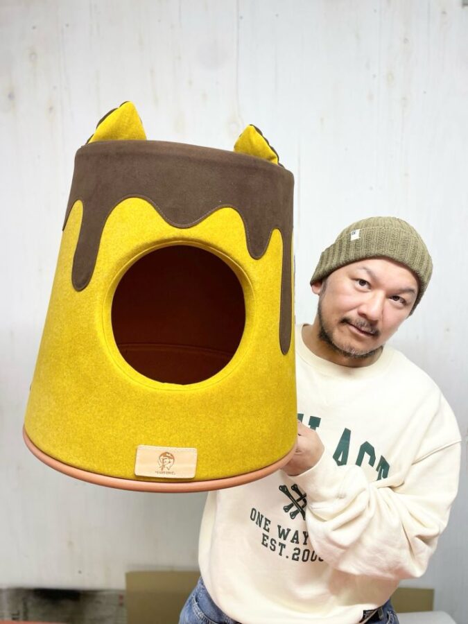 猫ちゃんにとって使い心地のいい猫ハウスにするために研究してくださり、さらにプリンの型や質感、素材探しまでこだわりをもって作り上げてくださった最高傑作です。