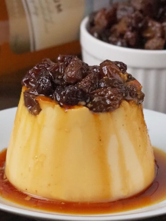 生地は生クリームを使わず、カスタードプリンであるところがポイントです。プリンのさっぱりした甘さと卵の風味、ほろ苦いカラメルに浸ったラムレーズンが大人のプリンに仕立てています。