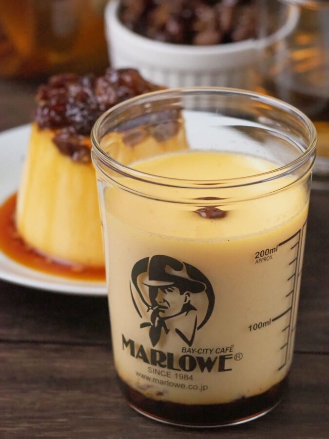 この芳醇なレーズンの甘みとコクはラム酒に漬け込む時間の経過でしか生まれないため、プリン工房では絶対に仕込みを忘れてはいけません。