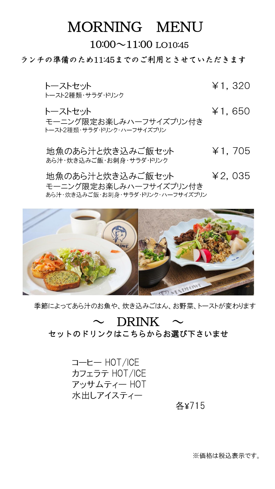 モーニング ・・・平日限定 10:00-10:45(LO)