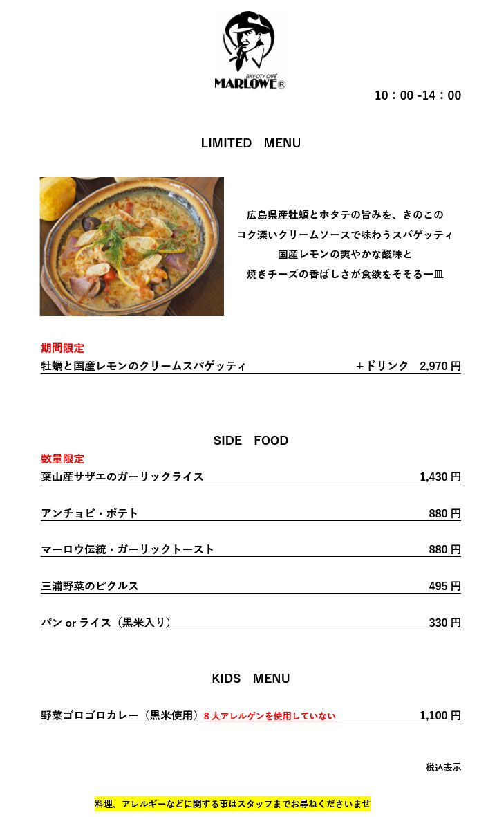 葉山マリーナ店メニュー