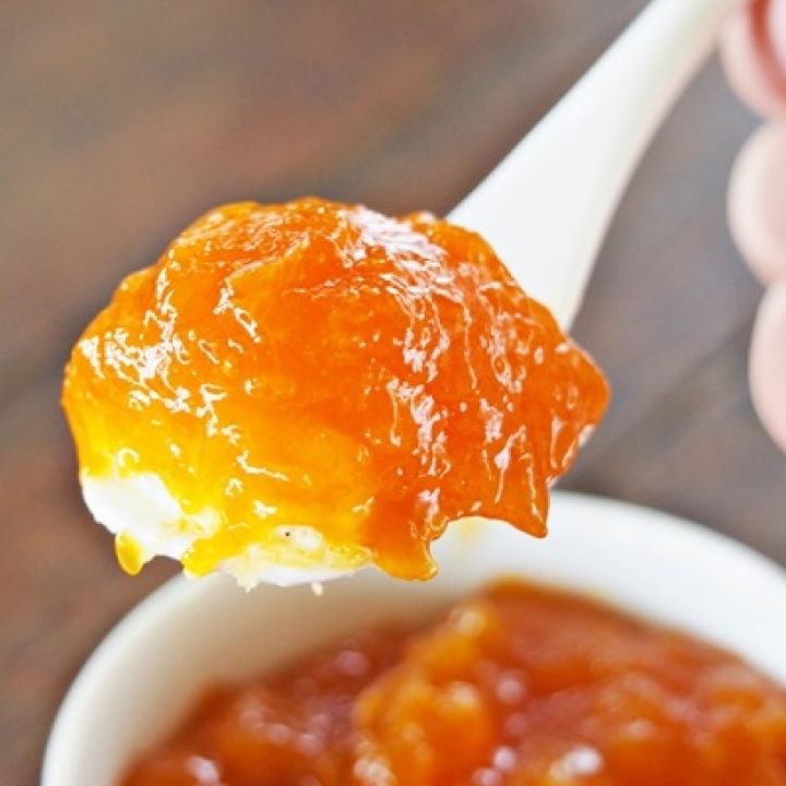 「あんずの里」として有名な長野県千曲(ちくま)市のあんずを使用。甘酸っぱいあんずジャムを柔らかく濃厚なブリュレプリンの上にたっぷりとのせます。