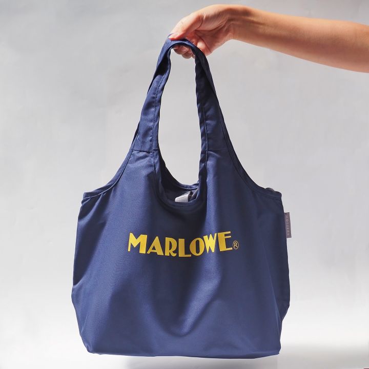 落ち着いたネイビーカラーにイエローでMARLOWEのロゴを入れました。